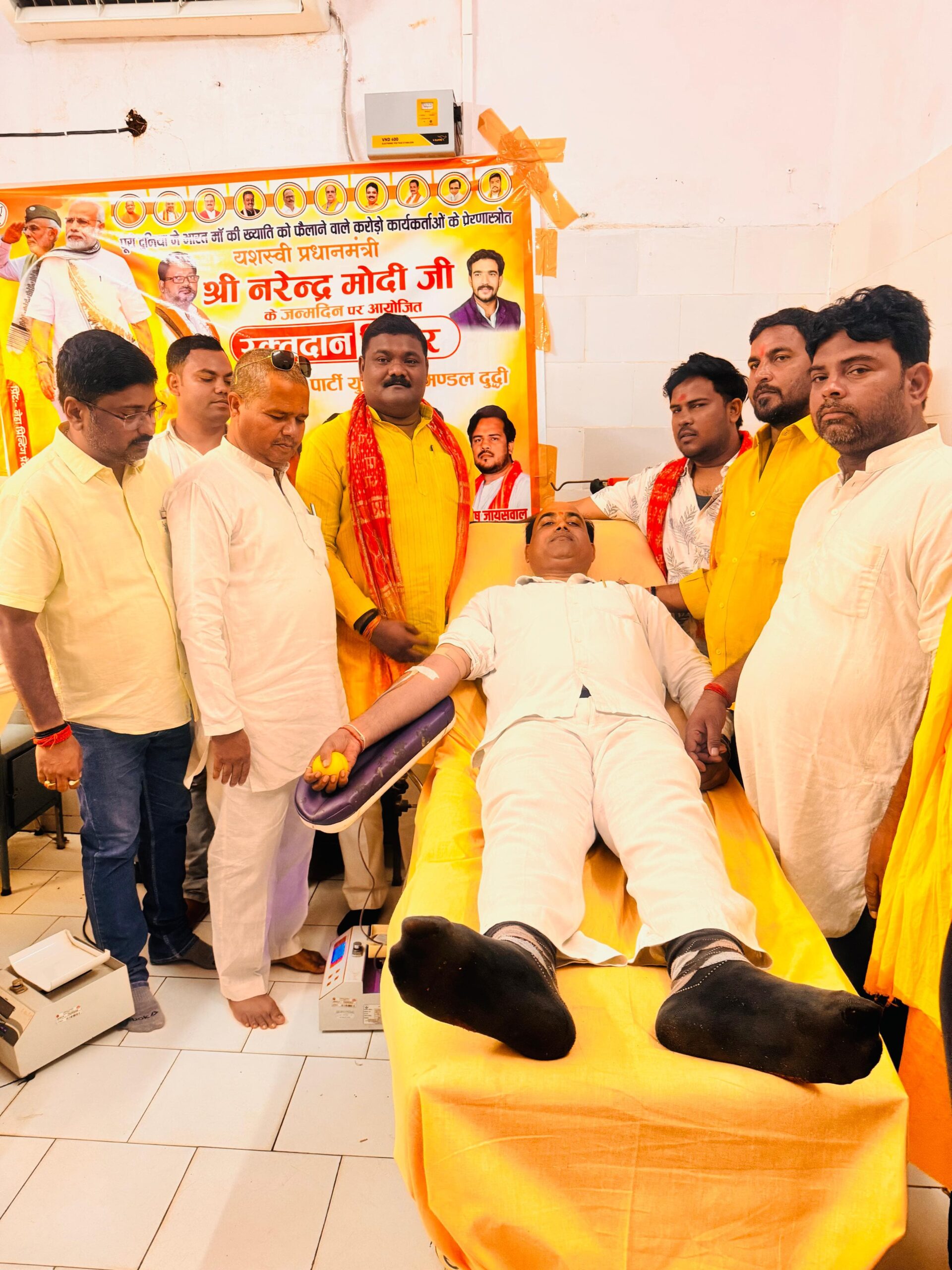 प्रधानमंत्री मोदी के जन्मदिन पर सेवा पखवाड़ा कार्यक्रम के अतर्गत भाजपा कार्यकर्ताओं ने किया रक्तदान